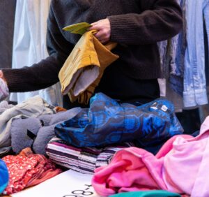 Överblivna kläder skänks till välgörenhetsorganisation.